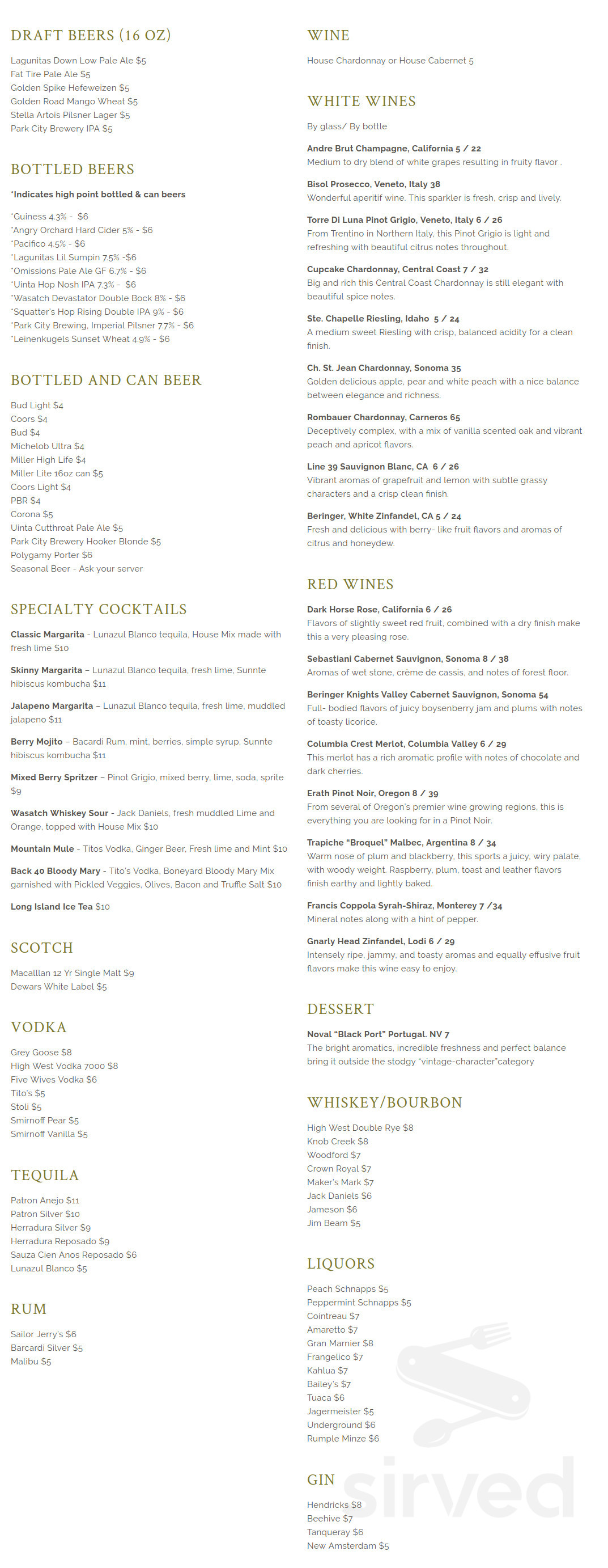 Online Menu Of Back 40 Ranch House Grill Restaurant Heber City Utah 84032 Zmenu